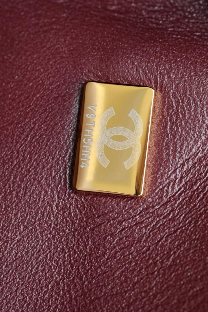 Crafted to the highest standard of 12A quality, this bag is indistinguishable from the original in look, feel, and craftsmanship. Made from luxurious, durable caviar leather, it features a diamond-quilted design, a rear patch pocket, and the signature front flap secured with a gold CC turn-lock. The chain-link strap is interwoven with leather, offering versatile styling. Inside, the flap opens to reveal a secondary flap and the classic burgundy leather interior with patch pockets—an unmistakable Chanel hallmark.